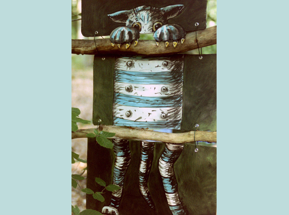 Le hasard d’une ballade miraculeuse en forêt nous fait découvrir l’existence de mares jusqu’alors cachées. C’est le lieu de prédilection des animaux pour se réunir au grand calme et se désaltérer. C’est aussi l’occasion inespérée de découvrir les habitants de cette forêt comme on ne les a jamais vus auparavant. Les mares sont représentées par de la bâche en PVC bleue, les animaux peints sur bois recto verso, dressés verticalement et plantés dans le sol, des nénuphars, flottent par ci, par là.